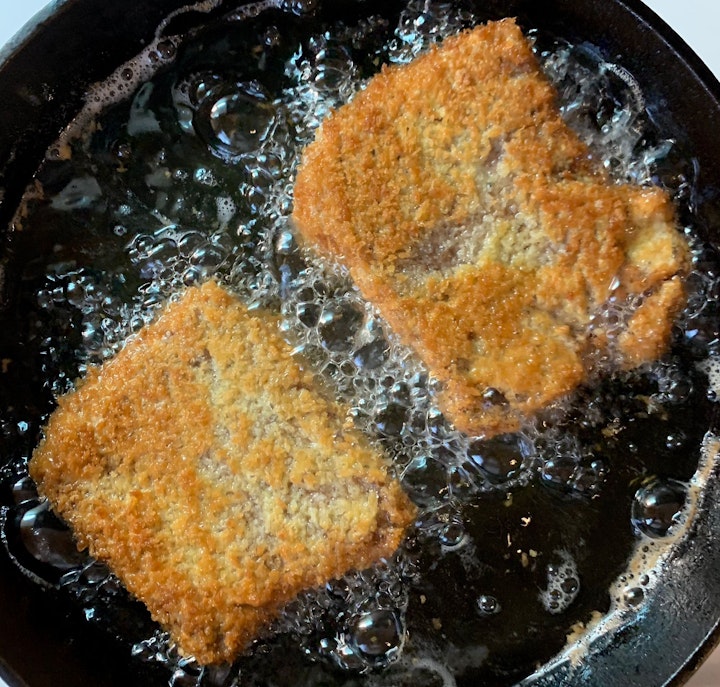 8. Carefully place cutlet in oil and fry for about 45 seconds per side.