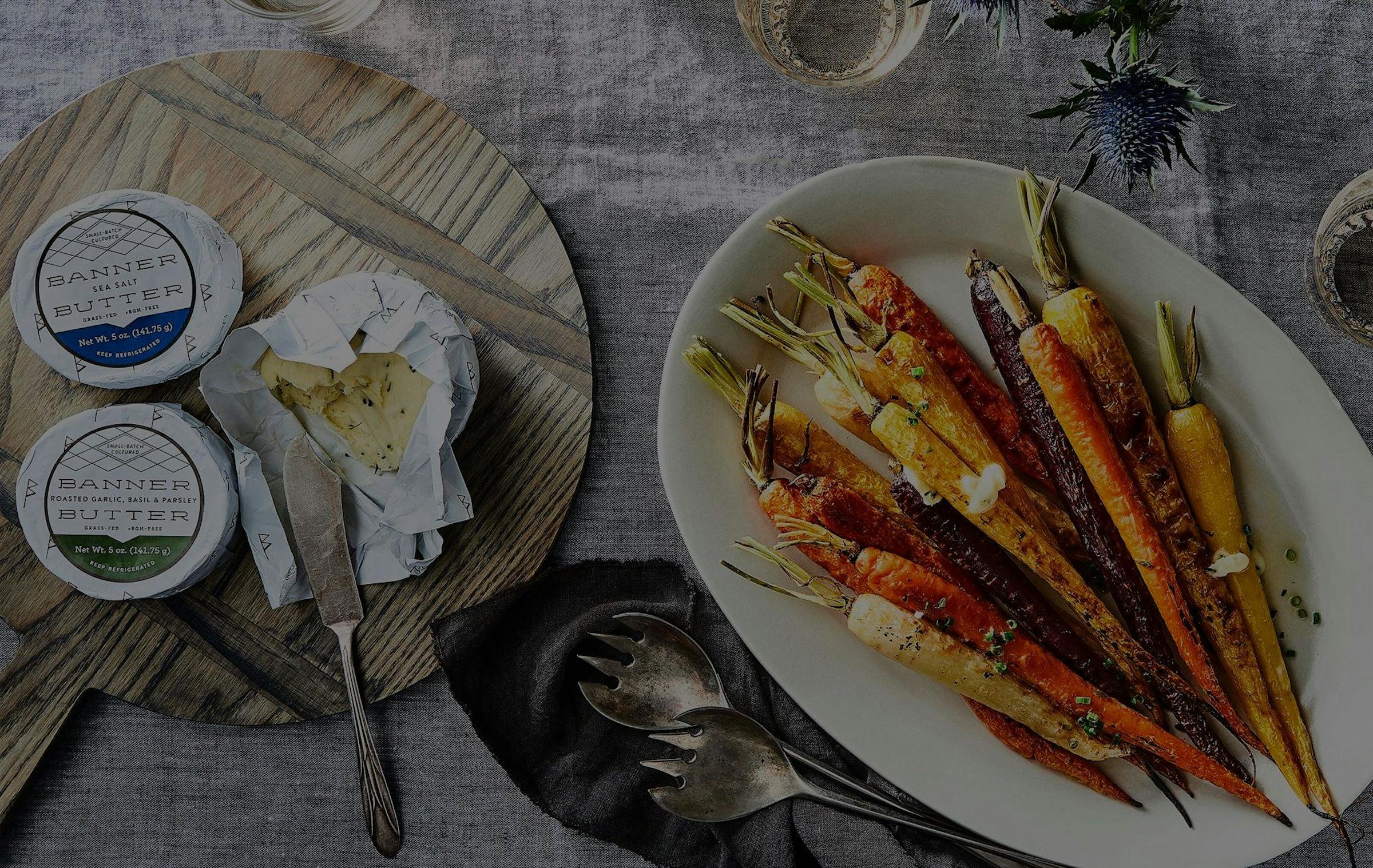 Banner Butter offers a creamier mouthfeel and deeper flavor than your regular store-bought butter — all due to the quality and freshness of their cream, a higher butterfat percentage, their slow culturing and churning process, and their meticulous attention to detail. They start with cream from hormone-free, grass-fed cows (from local Southeastern dairy farmers), and slowly ripen it before churning, letting the good bacteria form and give the butter the slight tang and deeper flavor they are known for. You’ll first notice the difference and higher quality in their butter from its color — a rich, golden hue — and taste it upon first bite.
